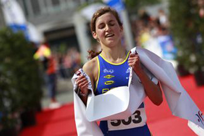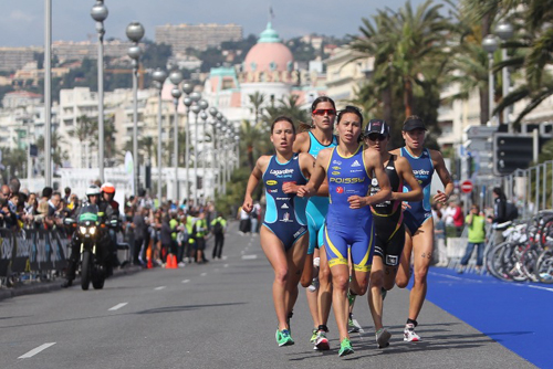 Les femmes ont ouvert les hostilités en s’élançant pour 750 mètre de natation dans la Méditerrannée. Très rapidement, les pisciacaises prennent les commandes de la course avec Andrea HEWITT, Jessica HARRISON, Carole PEON, Kathrin MULLER et Bérengère ABRAHAM. Les véritables explications débuteront lors de la partie pédestre. 3 athlètes se détacheront rapidement : RIBEROS, CHAREYRON et HEWITT qui se disputeront la victoire au sprint. RIBEROS l’emporte devant Andrea HEWITT.