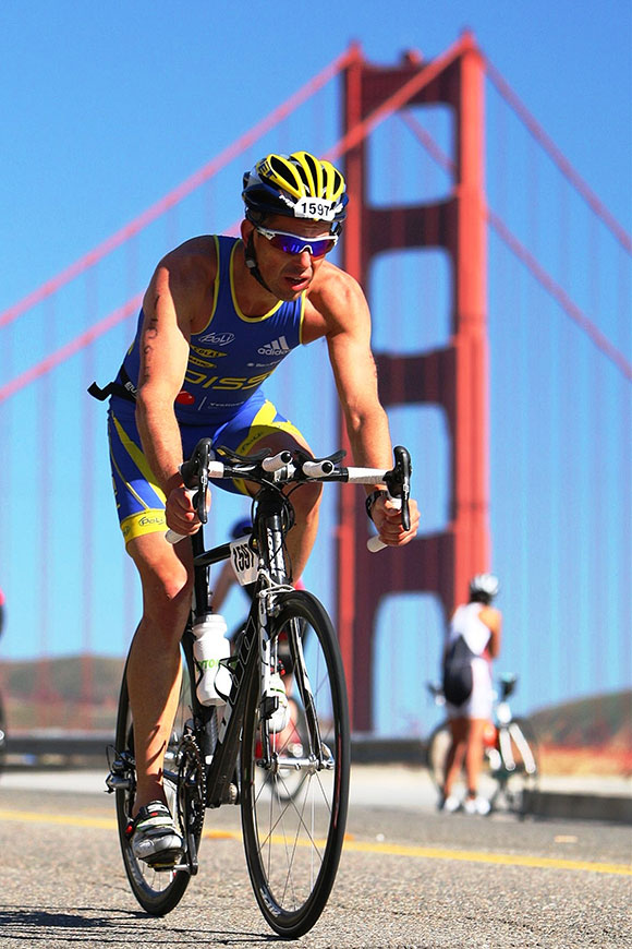 « Je suis allé à Alcatraz pour deux raisons : la convention mondiale du jeu vidéo se tenait à Los Angeles la semaine précédant la course et Greg Rouault (vainqueur en amateur et 9e au scratch en 2007) me parlait de cette course depuis des années avec des yeux qui pétillaient à chaque fois. Lorsque mon agenda professionnel s’est rempli, j’ai regardé les dates et décidé de prolonger le week-end de Los Angeles à San Francisco. Au final, c’est la course la plus fun que j’aie jamais couru. La natation est dantesque, avec à chaque respiration une vue sur la prison, les miradors, le Golden Gate Bridge à droite, San Francisco à gauche, un courant de malade (+ de 10km/h de côté) et des requins qu’on imagine à 20 mètres sous la surface… le tout dans une eau à moins de 12 degrés. Toutes les conditions sont donc réunies pour ne pas traîner dans l’eau… Puis, vélo et course à pied dans San Francisco (pétards à 20% à vélo dans les rues de la ville) et à travers le Parc National du Golden Gate Bridge… Un paysage superbe ! Au final, une bonne course pour l’amateur que je suis avec une 98ème place sur 2000 participants. »
