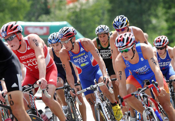 Les féminines se sont élancées dans la Vienne avec une avance de 2’ sur les messieurs pour attaquer les 1900m de natation avec un courant favorable.