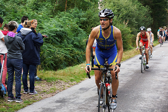 « La natation s’est bien passée, sans difficulté et sous le soleil (top). Par contre, dès le début du vélo « dur dur » avec les grosses cuisses et le palpitant qui s’affole sans raison apparente (surtout le premier tour). Puis une course à pied correcte, même si c’est un peu en deçà des objectifs. Les 180 mètres de dénivelé positif m’ont bien fais mal aux jambes. J’ai adoré l’ambiance d’avant et d’après course ainsi que le lieu, même si nous avons vraiment flirté avec le mauvais temps… A refaire entre potes, c’est sûr ! », résume Daniel.