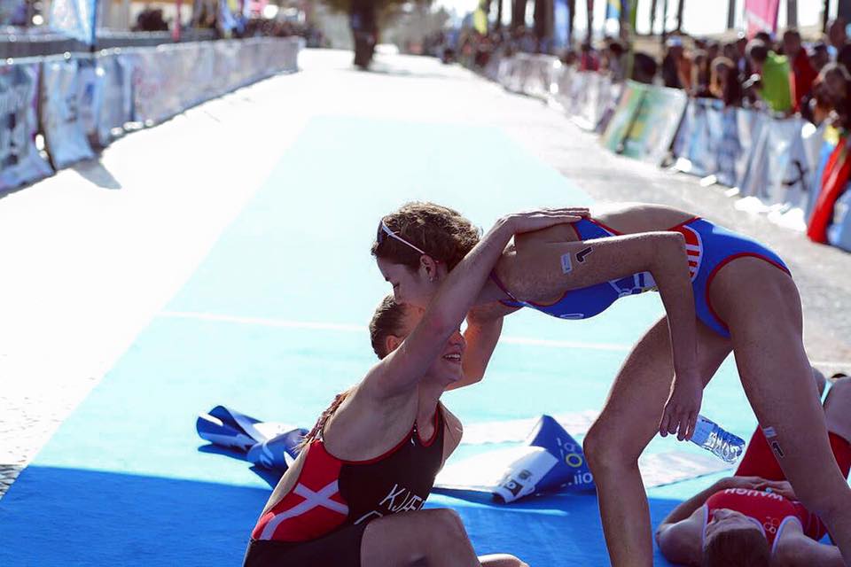 LÉONIE Dans la course élite femmes, Léonie Périault et Sandra Dodet ont tenu leur rang de jeunes espoirs du triathlon français féminin. Les deux pisciacaises se classent 3ème et 4ème derrière un duo d’Anglaises qui avait pris la poudre d’escampette sur le vélo et qui avait commencé la course à pied avec 4’ d’avance. Léonie et Sandra viennent donc valider un bon travail hivernal et leur progression constante en terminant devant des jeunes femmes de niveau mondial comme Aileen Reid ou Pamela Oliveira. Le résultat est donc très satisfaisant pour nos deux jeunes femmes qui participeront à une Coupe du monde en Chine le 17 Avril.