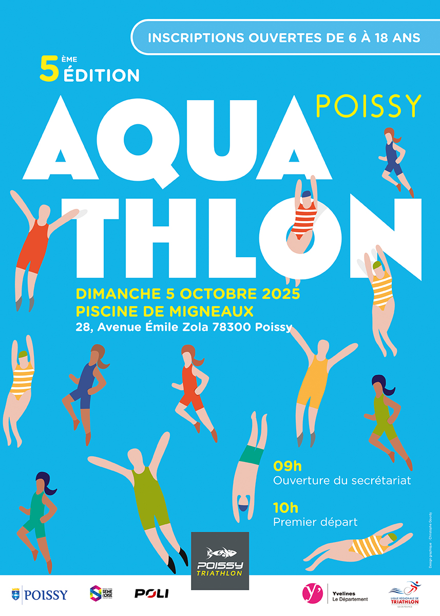 La 4e édition de l’Aquathlon de Poissy compte pour le Challenge Avenir Ile-de-France Jeunes et se tiendra le dimanche 5 octobre 2025, de 09h à 14h.